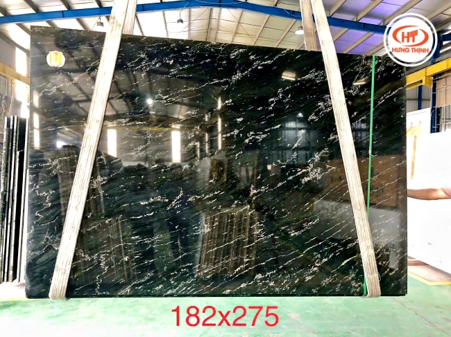 - Màu sắc và vân đá đặc biệt: dòng đá mang màu sắc chủ đạo là xanh lá đậm trên nền đen và các dải vân mây trắng, xám khác nhau, bề mặt đá bóng tạo nên nét sang trọng độc đáo.